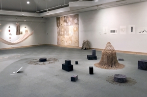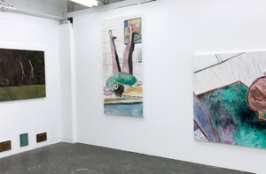 沖縄芸大油画4年による、卒業制作に入る前の個々の取り組みを展示したものである。インスタレーション作品は、 作品自体とコンセプトとに熱量の差を感じた。完成させることに急ぎすぎているように思う。平面作品の方が素材と格闘しながら、湧き出すイメージを導き出していて好感が持てる。 各自の表現の方向性が定まってきていることは悪くはないが、それを超えたある種、破綻したところから格闘しながら表現を積み上げていくという仕事がこの先に待っているように思う。今後卒業制作展でどのように展開していくかが楽しみである。
