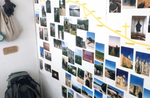 豊永美菜子個展『BUEN CAMINO!』(那覇市、言事堂8/25〜9/6)は、作者がフランスからスペインのサンティアゴ・デ・コンポステラまで約800キロの道のりを34日間かけて歩き、その間に撮った写真などを展示したもの。道中、Facebookにその様子が書き込まれリアルタイムで配信していた。世界遺産の教会や建造物、街並などを目にしながら、一歩一歩次の地点を目指す。過酷な旅である事は容易に想像できるが、展示された風景写真からはそれが感じられないくらいすがすがしく美しい。この展示会では、Facebookの日記に加筆、修正を加えた小冊子も作られた。その中で、隣で歩いているその人が国も、年齢も、性別も、宗教も関係なくいとおしくなる、という記述があった。理屈ではなく共に歩き、時間と目的を共有、経験することで深い部分での意思の共鳴が生まれるのではないだろうか。巡礼の旅とはそういう意味を持っているのかもしれない。
