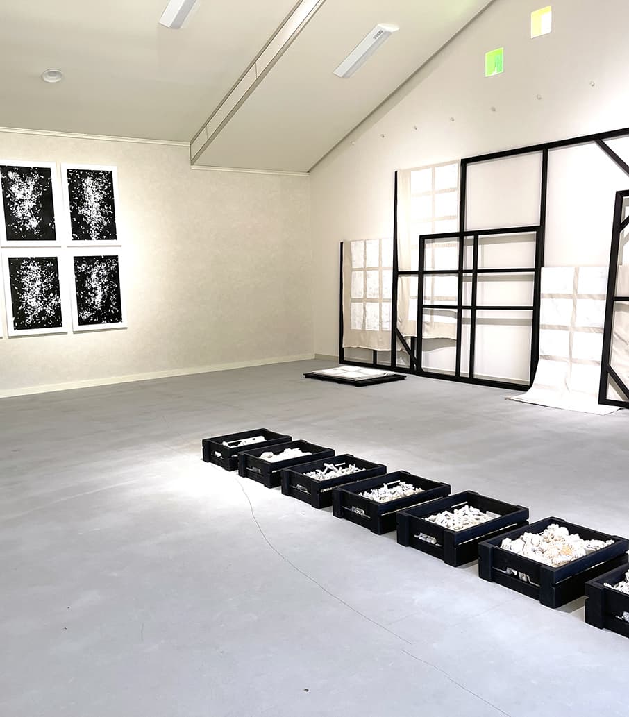 動くモデルをドローイングする仕事も続けているが、舞踏家をドローイングするワークショップイベントも行い、ドローイングと本作品との関係性を印象付けた。11月12日には、県内を拠点に活動する喜屋武千恵、阪田清子とのアーティストトークがあり、どのような対話が生み出されるのか注目したい。